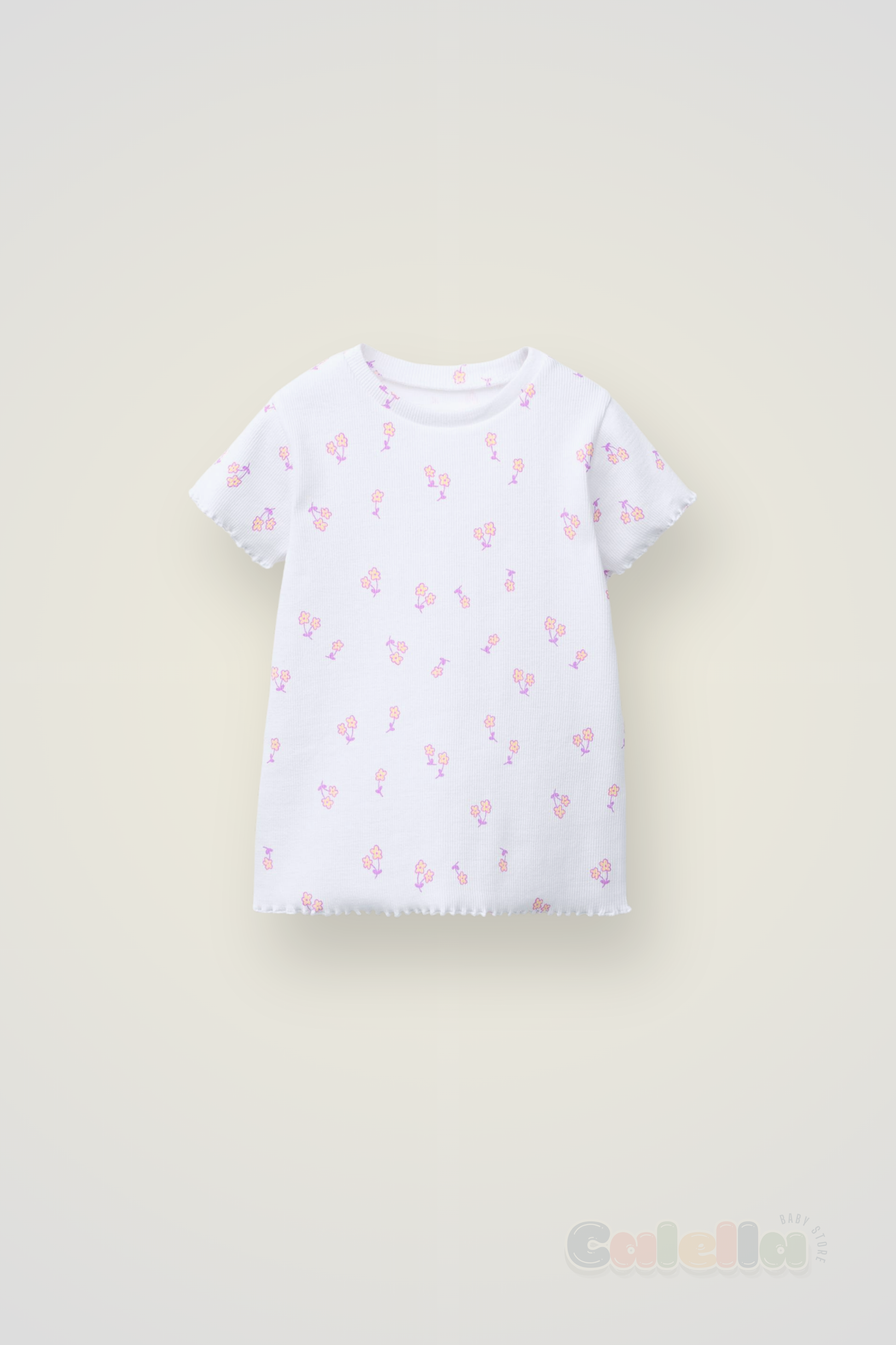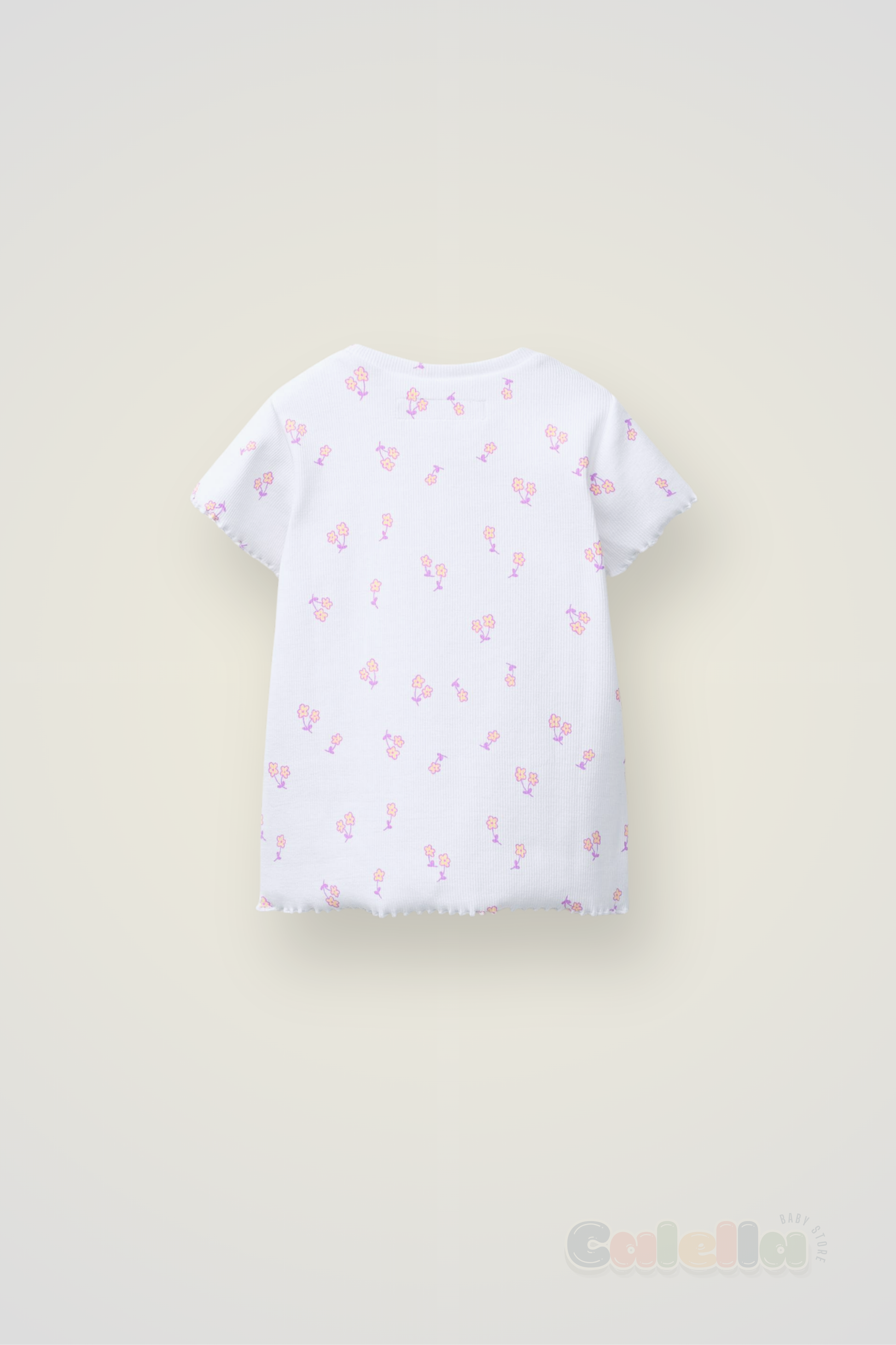 Esta blusita de tejido rib, con un suave 97% algodón, ofrece comodidad y estilo para los más pequeños. Su cuello redondo y mangas cortas la hacen perfecta para cualquier ocasión, mientras que los bajos con acabado en rizos añaden un toque divertido. Disponible en varios estampados florales que alegran cualquier día. Ideal para que los niños se muevan y jueguen con libertad y color.