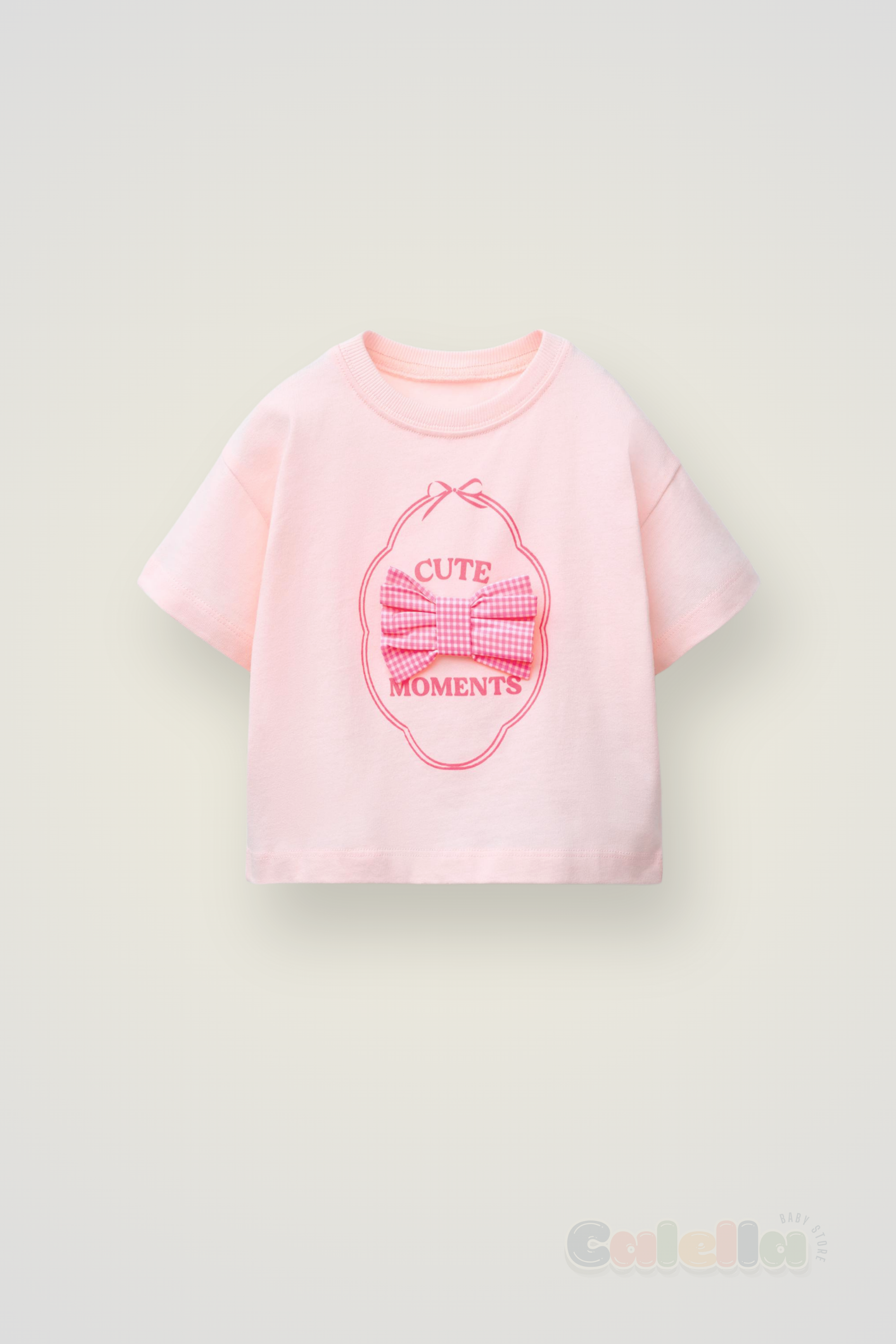 Esta franelita para niñas combina comodidad y estilo con su tejido 100% algodón, cuello redondo y manga corta. El lazo y el aplique delantero con estampado de cuadro vichy le dan un toque divertido y encantador, perfecto para que las pequeñas luzcan alegres y llenas de vida en cualquier ocasión.
